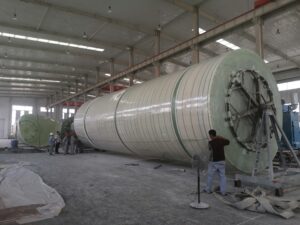 Custom-engineered double-wall FRP tanks with integrated insulation and leak-detection interstitial space, designed for safe and reliable industrial liquid storage.